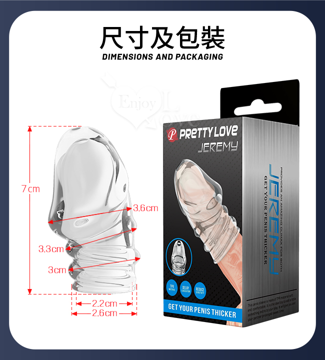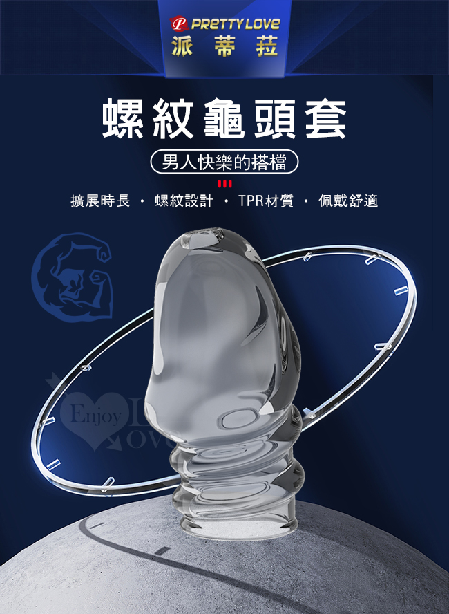 | PRETTY LOVE 派蒂菈 ‧ JEREMY 傑里米 螺紋武裝強化龜頭套 - 頭部出精口設計﹝透明白﹞