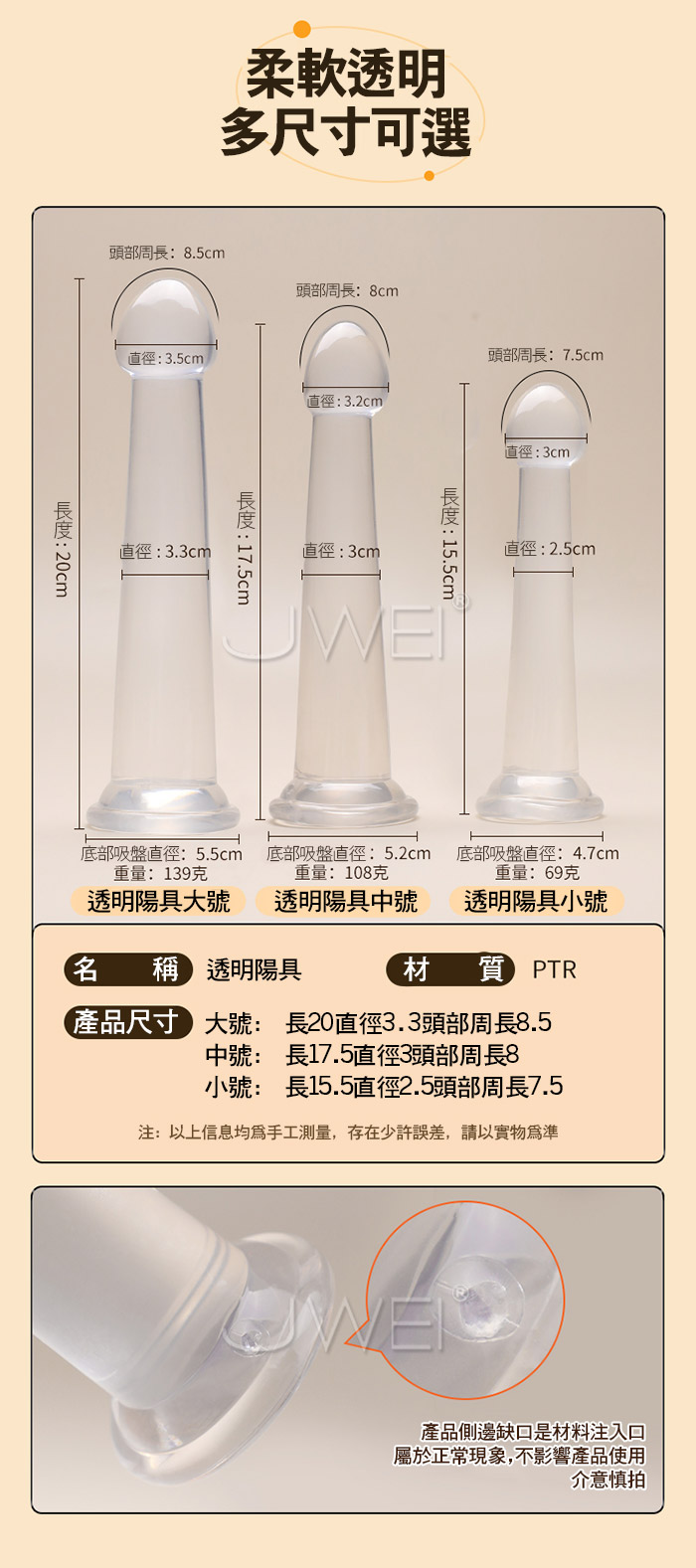 清澈透明 柔軟舒服 觸感真實 堅挺入肚。