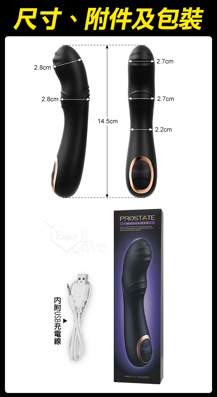 ROSELEX 勞樂斯 ‧ 舒馬克 10頻震動激活觸擊前列腺按摩棒﹝智能加溫/曲線雙凸激點/親膚矽膠﹞