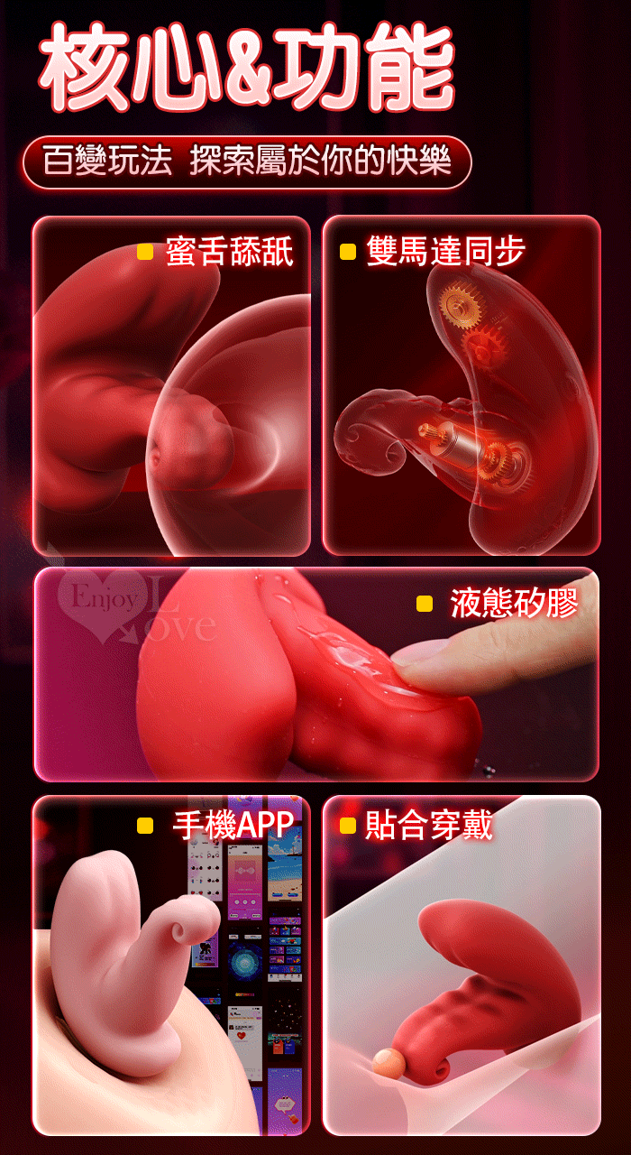 勞樂斯 ‧ 巧舌之吻~雙電機/10頻強震/超軟糯/貼合入體/內外同爽/手機APP/ 百變玩法穿戴按摩器 ﹝具兩種操控模式﹞蜜粉