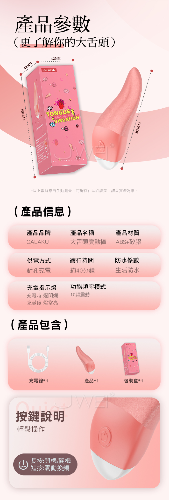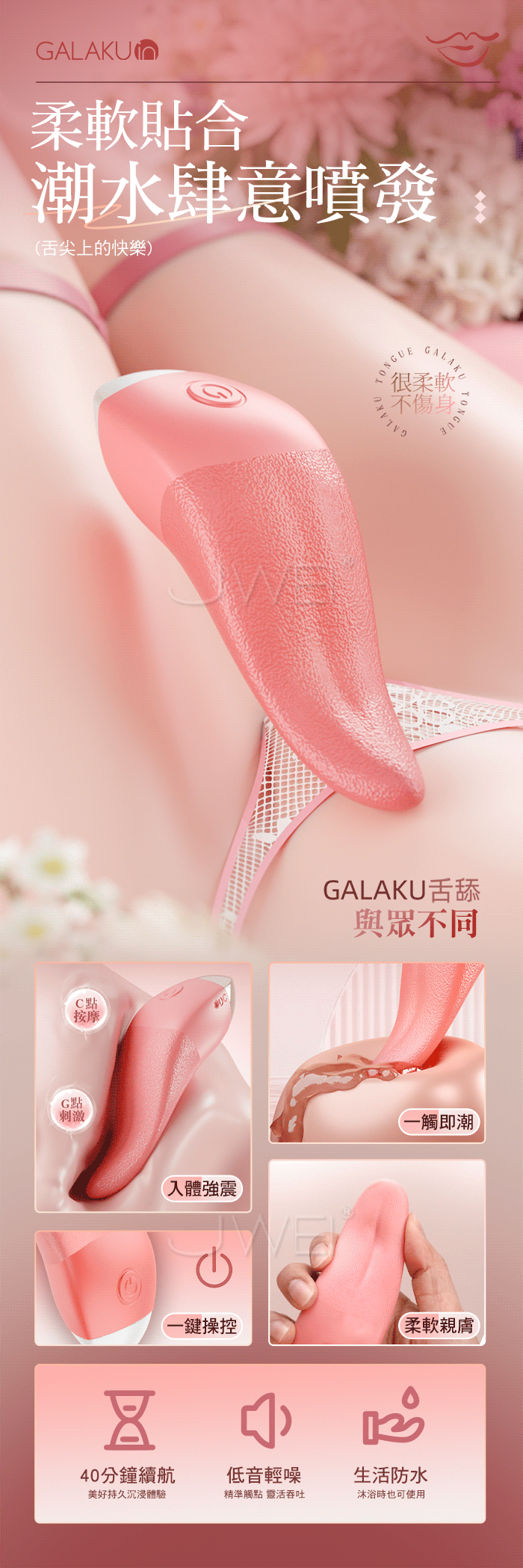 GALAKU.大舌頭 10頻強震淺撩深舔 仿真舌頭舔震G點按摩棒