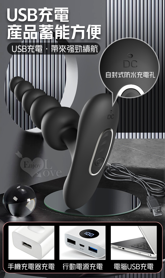 派蒂菈 ‧ CORBAN 科爾班 12頻強力震動~拉珠後庭按摩器﹝男女通用/柔軟矽膠/輕鬆入體/USB充電﹞