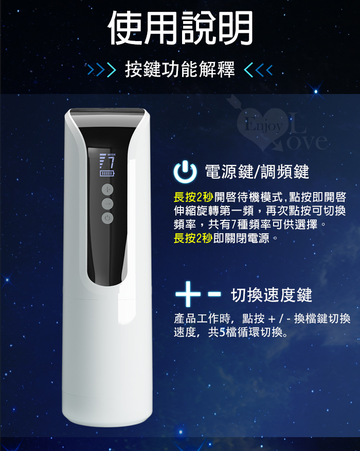 ►您現在的位置:首頁>派蒂菈 ‧ KAHLEAH 卡利亞 液晶顯示7頻旋轉活塞伸縮旋x5段速度榨精飛機自慰杯