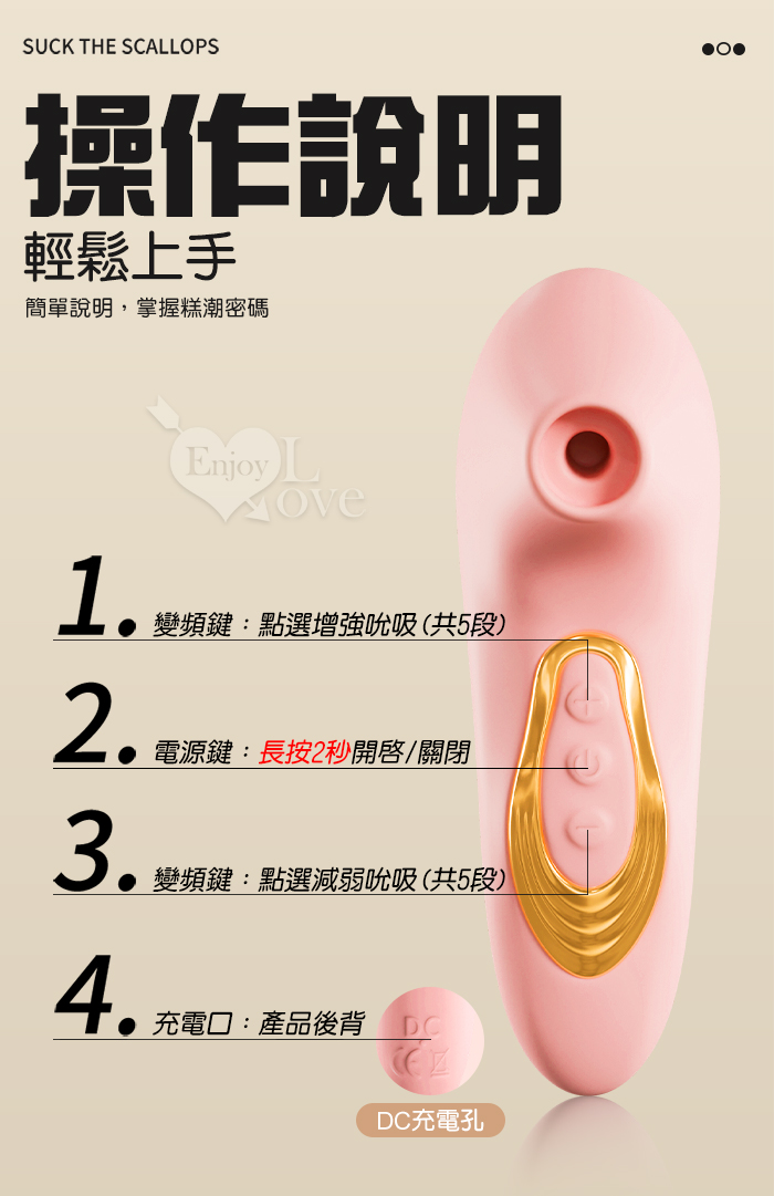 吸歡貝.真空吸吮酥麻快感口愛器﹝5段調速強弱+小巧吻吸+USB充電﹞粉紅