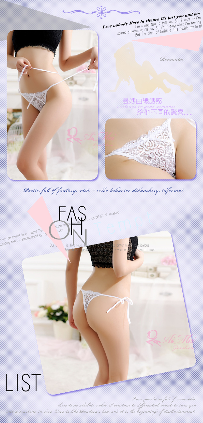 ※ 設計特色:側綁帶、緹花蕾絲。
