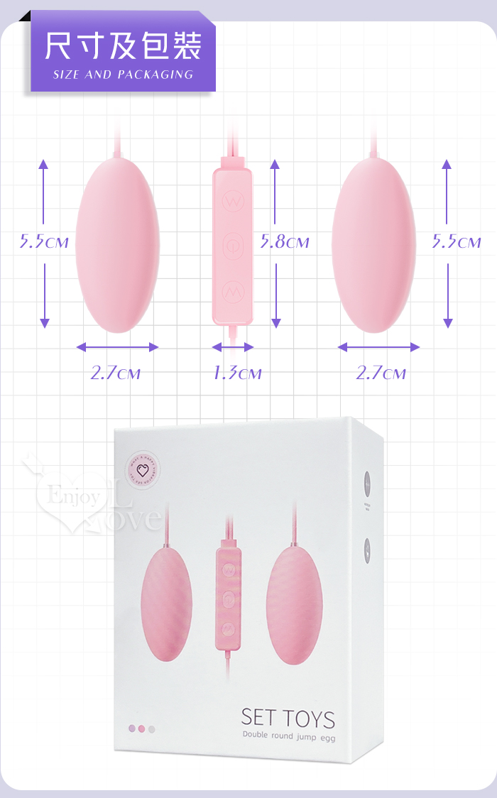 | ROSELEX 勞樂斯 ‧ 雙圓跳蛋 18頻調控強震入體雙跳蛋﹝內外刺激+USB直插供電+雙邊可獨立控制﹞淺粉