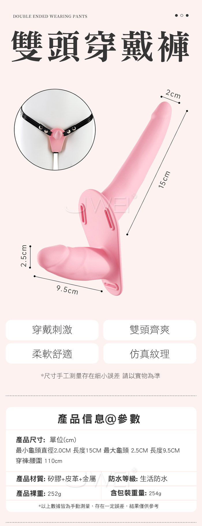 輕裝上陣貼身穩固久享快樂,飽滿頭部模擬肌理 13個鬆緊尺寸可調節大小,狂甩不掉!更多花式玩法等你來探索~ 產品規格 ■材質: 矽膠+皮革+金屬 ■規格: 詳如圖片標示 ■功能: 穿戴刺激、雙頭齊爽