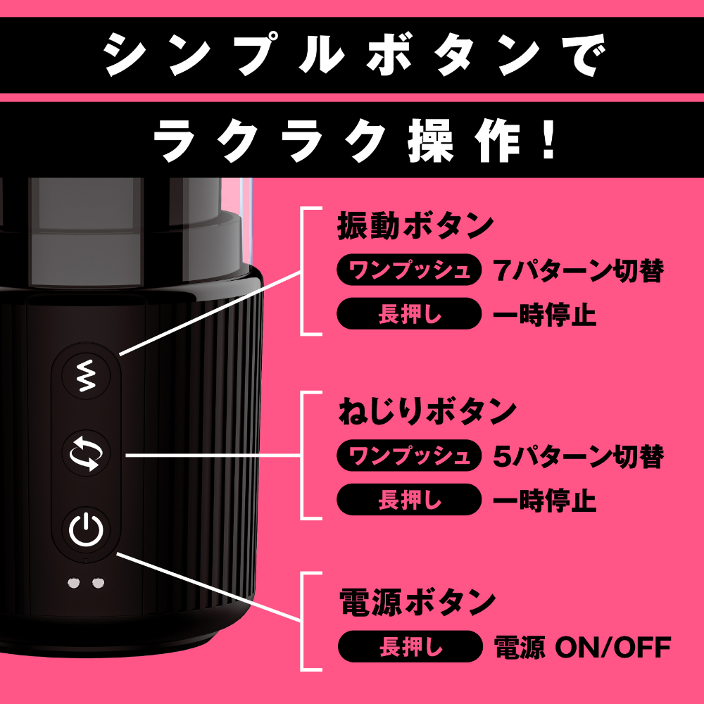 【ギュルギュルねじり5パターン】×【芯まで響くヘビー級振動7パターン】。