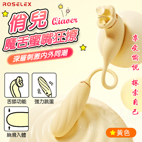 ►您現在的位置:首頁>ROSELEX 俏兒 ‧ 魔舌蜜嘴狂撩+長跳蛋 舔震聯手雙組合按摩器﹝花樣玩法/10頻強震/內外同享潮吹/親膚矽膠﹞黄