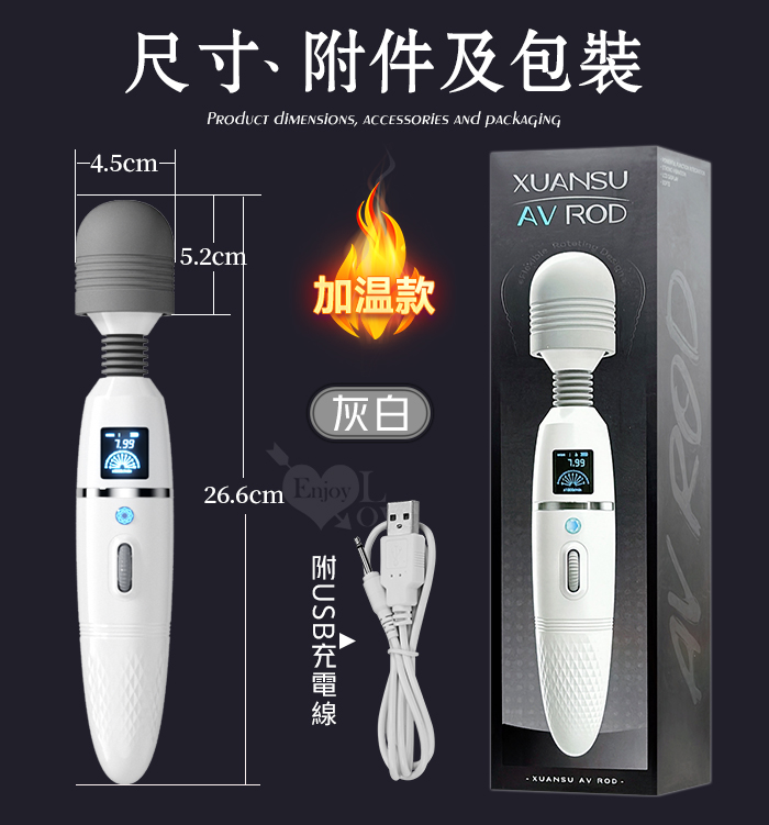 ROSELEX 潮吹王AV棒 ‧ 女優を絕叫 液晶螢幕顯示9頻X8級速大頭強震按摩棒-灰白﹝智能加溫款﹞