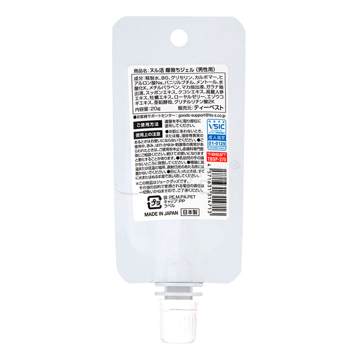 ►您現在的位置:首頁>日本原裝進口T-Best‧ヌル活 爆勃ちジェル 男用冷熱雙重爆炸勃起凝膠-20ml