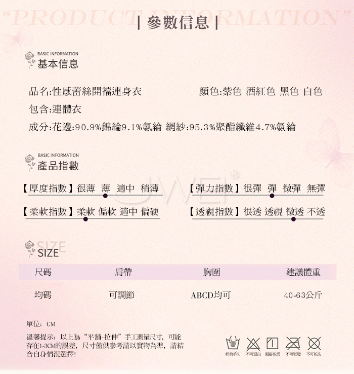 2.基於保障消費者個人衛生,情趣衣物類恕不接受退換貨,如為商品本身暇疵,接受三日內換貨,請勿試穿。