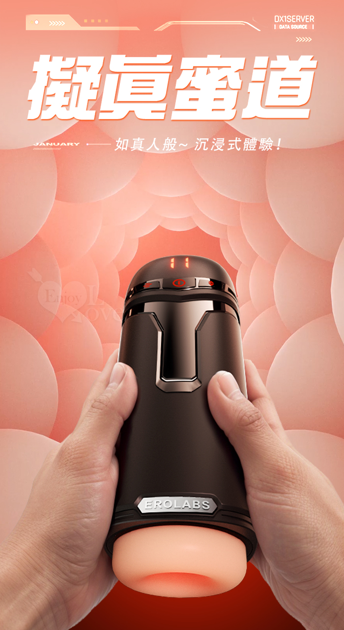 | EROLABS 擼霸全配版 ‧ 智能伸縮/吸吮/震動/語音 緊實肉感自慰鍛練杯﹝液晶數碼9頻伸縮X9頻吸吮X9強震+4國淫聲+耳機﹞白色