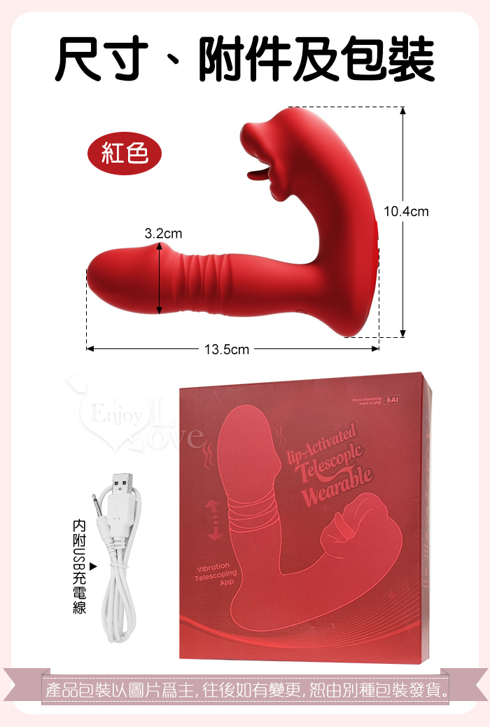 | ROSELEX 上舔下頂 入體伸縮舔震三合一 10頻雙馬達貼合穿戴按摩器 - 可手機APP遙控﹝具兩種操控模式﹞紅