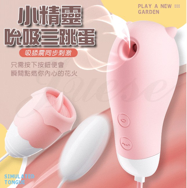 滿2000元贈品 謎姬 MizzZee.小精靈 3種吸吮+10頻震動圓潤小嘴USB充電震舔矽膠三跳蛋