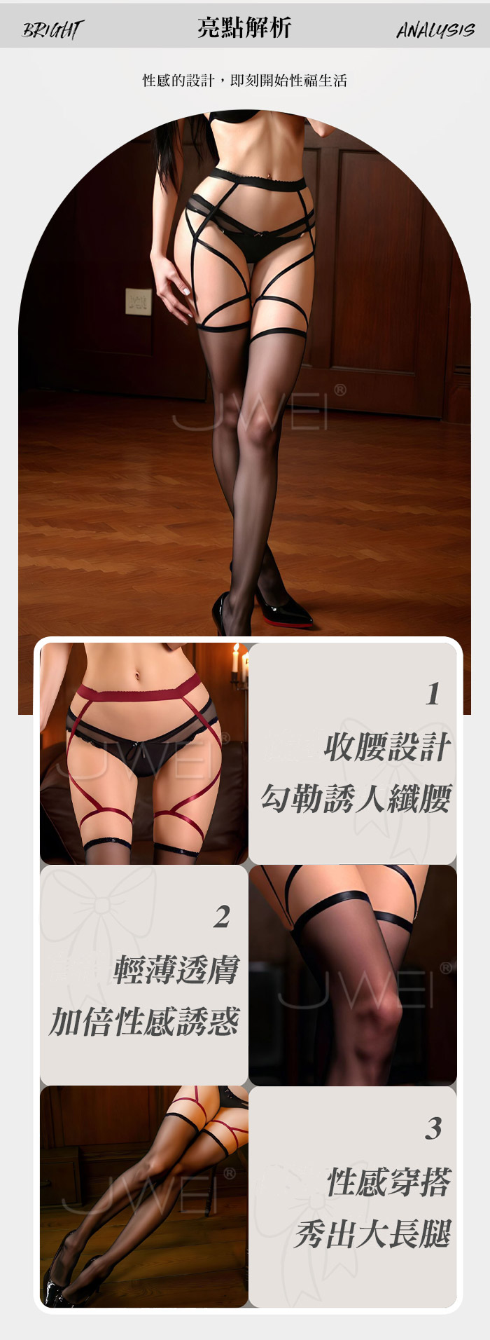 ►您現在的位置:首頁>情慾物語.交錯織帶一體式吊帶透膚啞光絲襪【紅吊帶+黑絲】